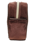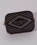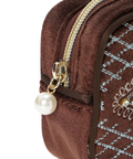 光沢のあるベロア素材に繊細な刺しゅうとパール風チャームをあしらった特別感あふれるポーチ。
