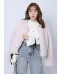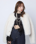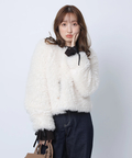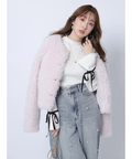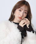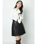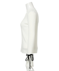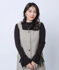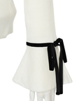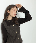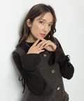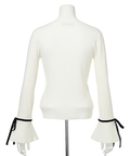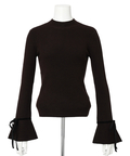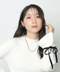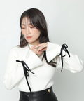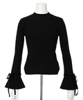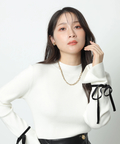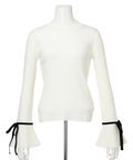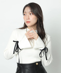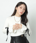 袖に施されたリボンがガーリーなアクセントになるニット。
