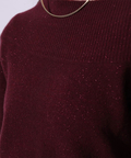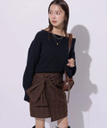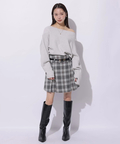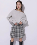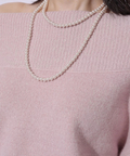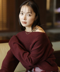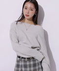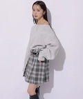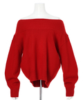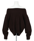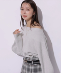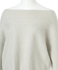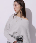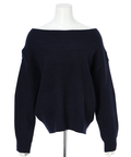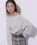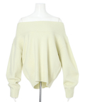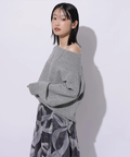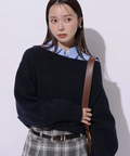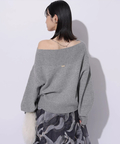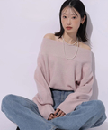 肩を落とした抜け感のあるシルエットが魅力のオフショルニット。