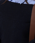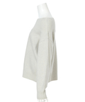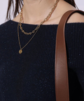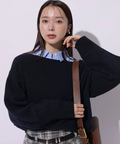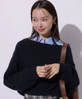 デコルテを美しく見せるデザインで、一枚でさらりと着るのはもちろん、シャツをインしてレイヤードすればトラッドな着こなしも楽しめます。