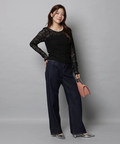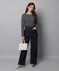 ほどよいストレートシルエットが脚のラインをきれいに見せ、スタイリングに取り入れやすい一本です。