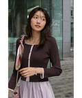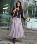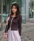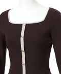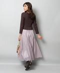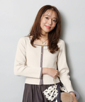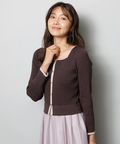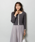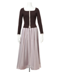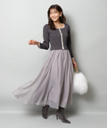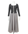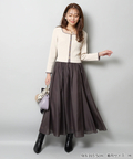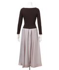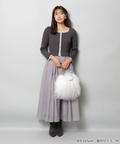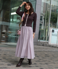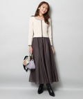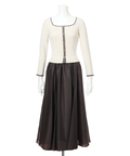 カーディガン×フレアスカートの異素材をドッキングしたワンピース。