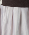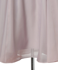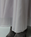 首元はスクエアネックでデコルテを美しく、ウエスト下はたっぷりのボリューム感が、動くたびに華やかに揺れます。