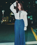デニムでカジュアルダウンしても、スカートと合わせてフェミニンに仕上げても素敵です。