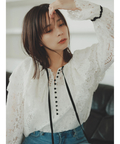 繊細なレースを贅沢にあしらった華やぎブラウス。