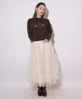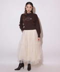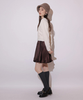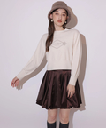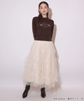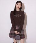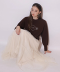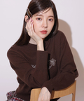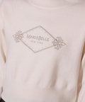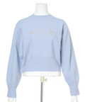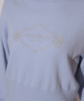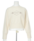 胸元にエンブレム風ロゴ刺しゅうをあしらった、特別感漂うコラボニット。