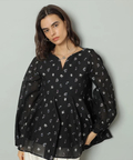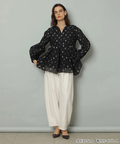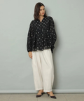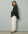 ふんわりとしたペプラムシルエットが立体感を演出するブラウス。