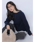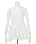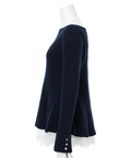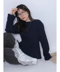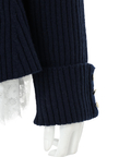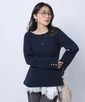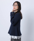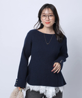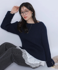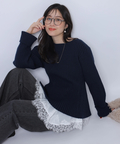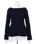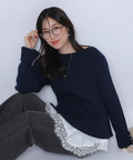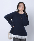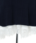 リブ編みのニットに繊細なレースヘムキャミを重ねた、レイヤード風デザインが魅力の一枚。