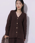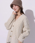 立体感のあるケーブル編みがシーズンムードを引き立てるカーディガン。