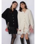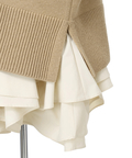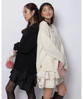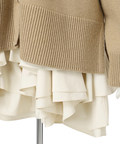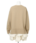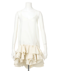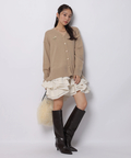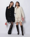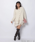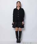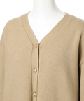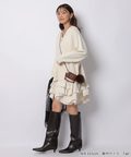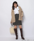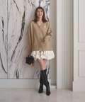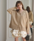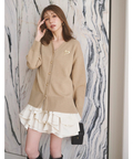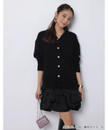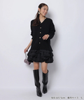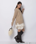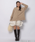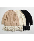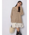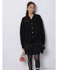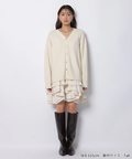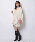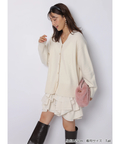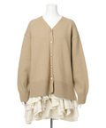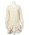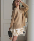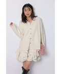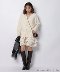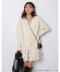 ゆるやかなシルエットのカーデが抜け感を演出し、フリルが華やぐワンピが大人かわいい印象に。