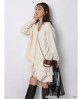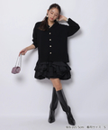 女性らしさが引き立つカーディガンとペプラムワンピースのセット。