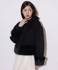なめらかな質感が魅力のリボンネックファーリバーコート。