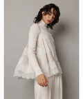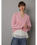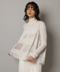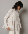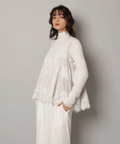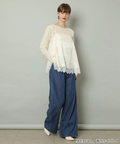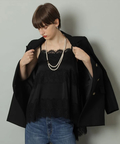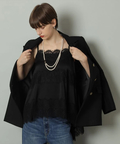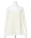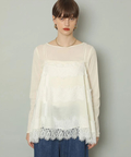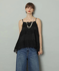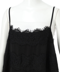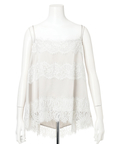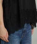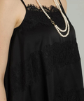 艶やかな素材に繊細なレースをあしらったキャミブラウス。