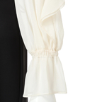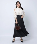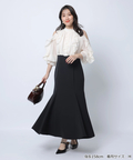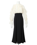 シフォン風の軽やかなブラウスと、すっきりとしたシルエットのスカートをドッキングし、1枚でスタイリングが完成します。