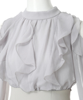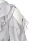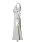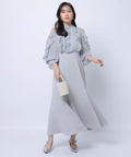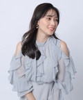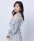 華やかなフリルデザインとショルダーオープンが印象的なドッキングワンピース。