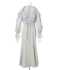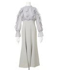 軽やかなブラウス風トップスと落ち感のあるスカートが一体になり、1枚でスタイルが決まります。