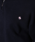 胸元や背面に施されたロゴ刺しゅうが上品なアクセントに。
