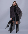 上品な艶をまとった素材が魅力のフェイクレザーラップミニスコート。