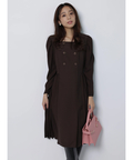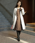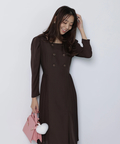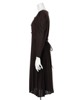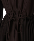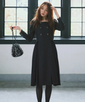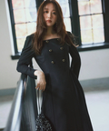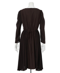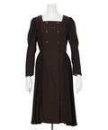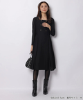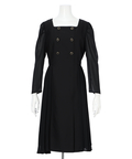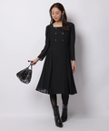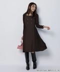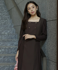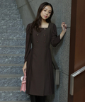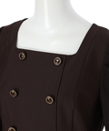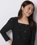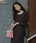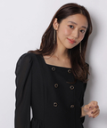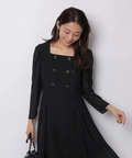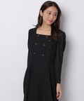 上品なスクエアネックとフロントボタンが印象的なサイドプリーツワンピース。