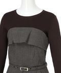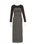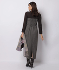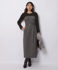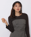 上身頃はすっきりと、ウエストから下はベアデザイン風に切り替えた、レイヤード見えのドッキングワンピース。