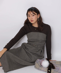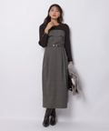 高め位置に施したウエストベルトがスタイルアップを叶え、縦ラインを強調するシルエットで大人な雰囲気に。