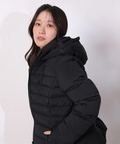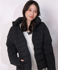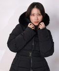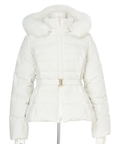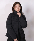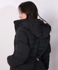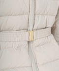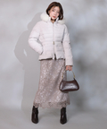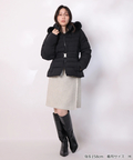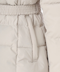 ボリュームのあるシルエットをウエストベルトで引き締めたミディ丈パフィーコート。