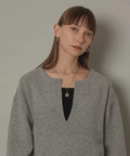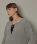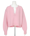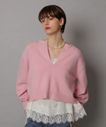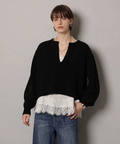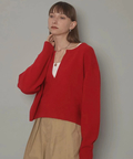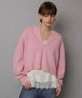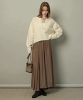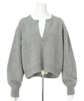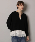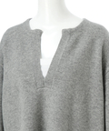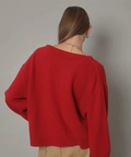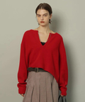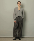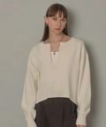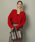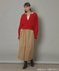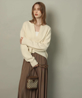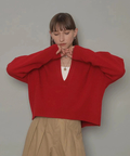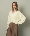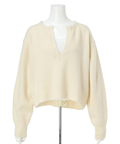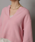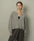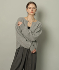 ざっくりと切り込まれたVネックがさりげない抜け感を演出するニット。
