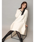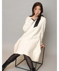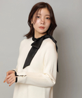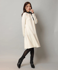 上品な存在感を放つネックリボンがポイントのニットワンピース。