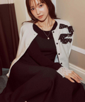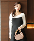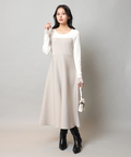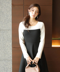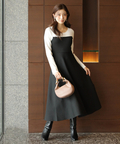 ビスチェを重ねたような切替デザインが印象的なワンピース。