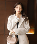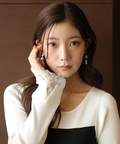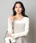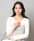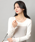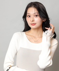 袖口のレースがさりげなく女性らしさを引き立て、上品な華やぎを添えます。