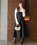 一枚で主役になるドレスライクなアイテムは、ブーツ合わせで季節感のある着こなしに。