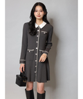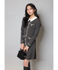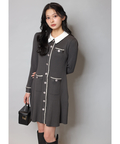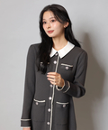 繊細なレーストリムが女性らしさを引き立てる衿付き2wayニットワンピース。