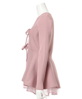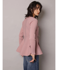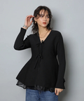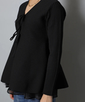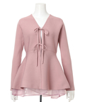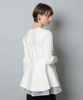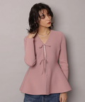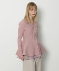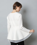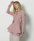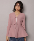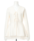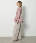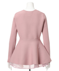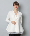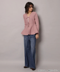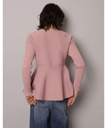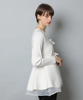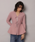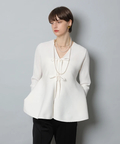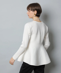 ウエストから広がるペプラムシルエットが女性らしい印象のカーディガン。