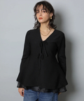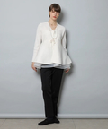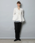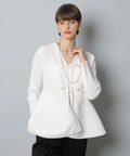 リボンディテールがさりげなく華やかさを添え、動くたび揺れる裾が上品な抜け感を演出します。