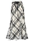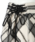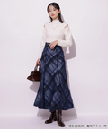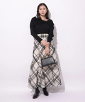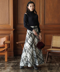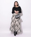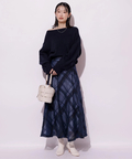 繊細なチュールに大ぶりのチェック刺しゅうを施した華やかなフレアスカート。