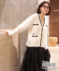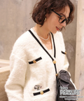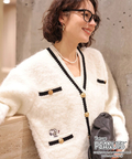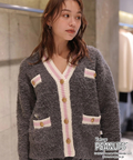 ふわっとしたループ編みが魅力のカーディガンに、フロントのワンポイント刺しゅうが愛らしいアクセント。