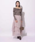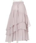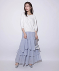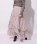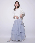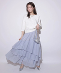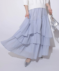 軽やかなシアー素材が動くたびふわりと揺れるティアードスカート。