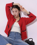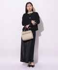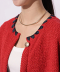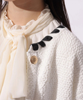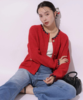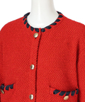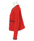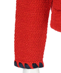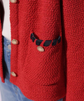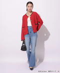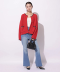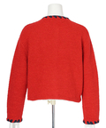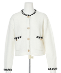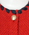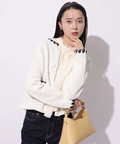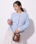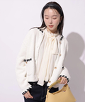 縁に施された配色ディテールが上品なアクセントになり、羽織るだけでクラシックなムードを演出します。