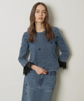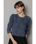 さりげないビジューを散りばめた、華やぎのあるデニムトップス。