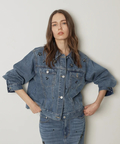 デニムのカジュアルさに、ビジューのきらめきを効かせた主役級Gジャン。
