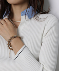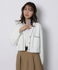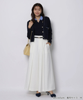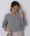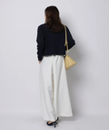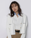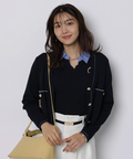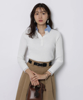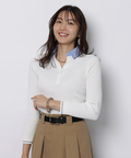 すっきりと開いたネックラインに、配色のシャツカラーが上品なアクセントを添え、きれいめな雰囲気を演出します。