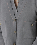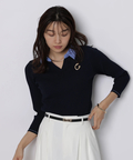シャツ襟を重ねたように見えるデザインが魅力のVネックアンサンブル。