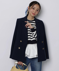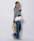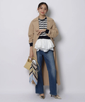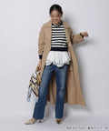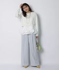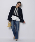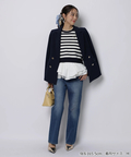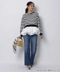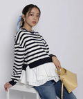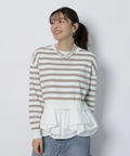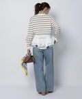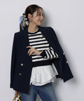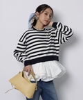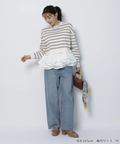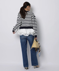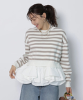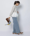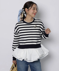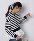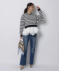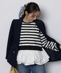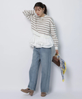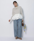 シンプルなボーダーニットにふんわりとボリュームのあるフリルが映え、1枚でコーディネートが華やぎます。