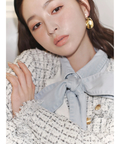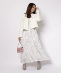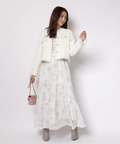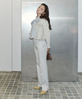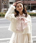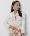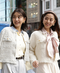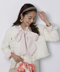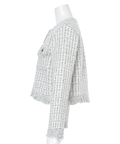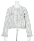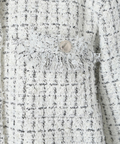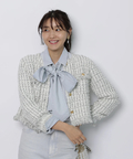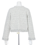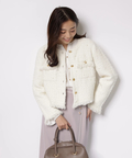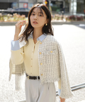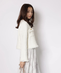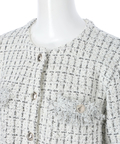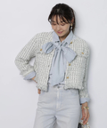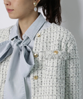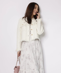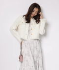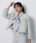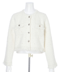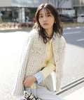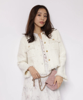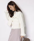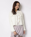 上品なニットツイードにゴールド調ボタンをあしらった、華やかさと大人カジュアル感を両立したショートジャケット。