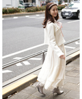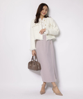 ふんわりとした編地が優しい表情をつくり、軽い着心地ながらシルエットはすっきり整います。