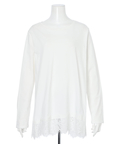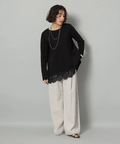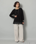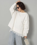 裾にあしらったレースがレイヤード見えする華やかなデザインで大人の抜け感を演出します。