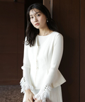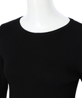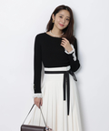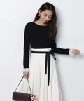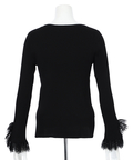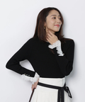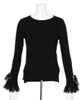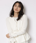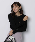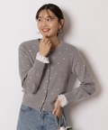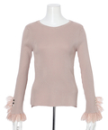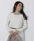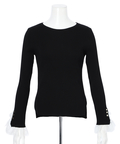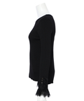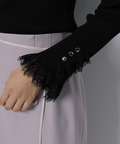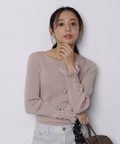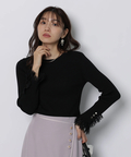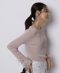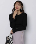 上品なレースカフスが手元を華やかに見せてくれるリブニット。