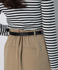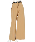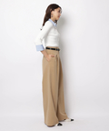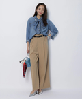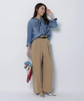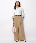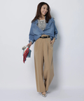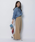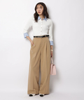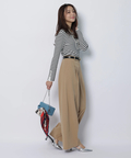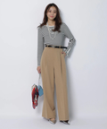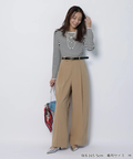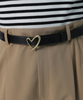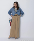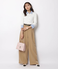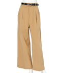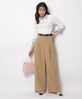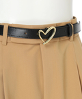 さりげない上品さを添えるハートモチーフのベルトが映えるワイドパンツ。