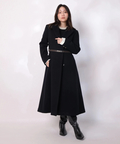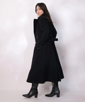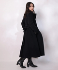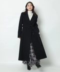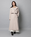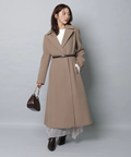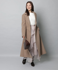 ウエストをきゅっと引き締めてくれるベルト付きデザインのロングチェスターコート。