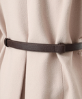 ベルトのウエストマークで脚を長く見せてくれるのも魅力ポイント。